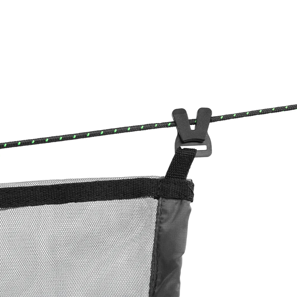 The Hammock Mesh is very easy to install, just fasten the ridge line along the edges of the hammock with special carabiners and fasten the net by fasteners.